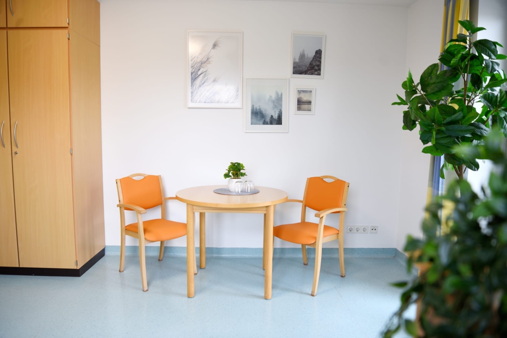 In den seniorengerecht ausgestatteten Einzel- und Doppelzimmern finden Sie ein wohnliches Zuhause, das Sie mit eigenen Kleinmöbeln, Bildern und anderen persönlichen Gegenständen individuell gestalten können.